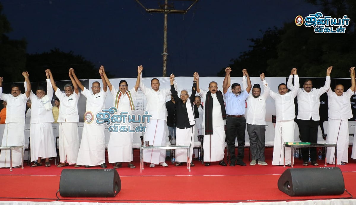 In this situation, against the BJP, the DMK and its allied parties are holding a huge protest meeting in Coimbatore. In this, all alliance party leaders including A. Raza, D. R. Balu, K. Veeramani, Vaiko, Thirumavalavan participated.